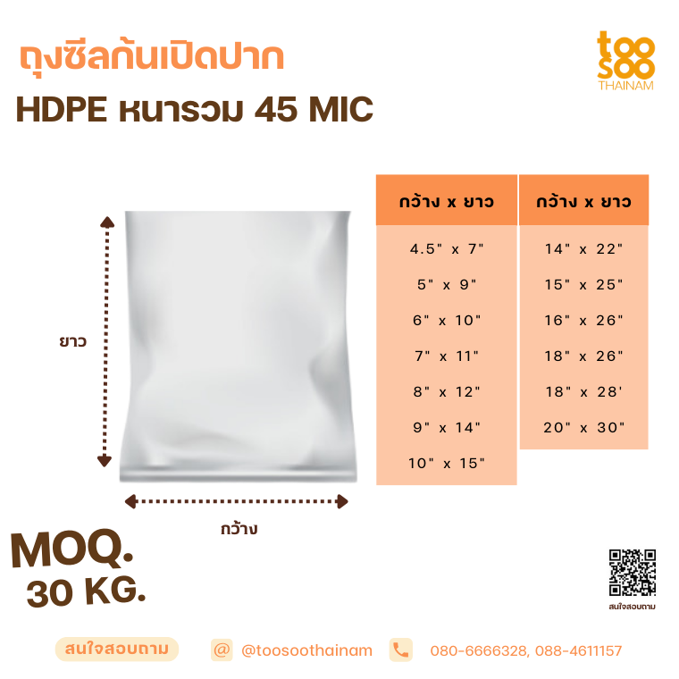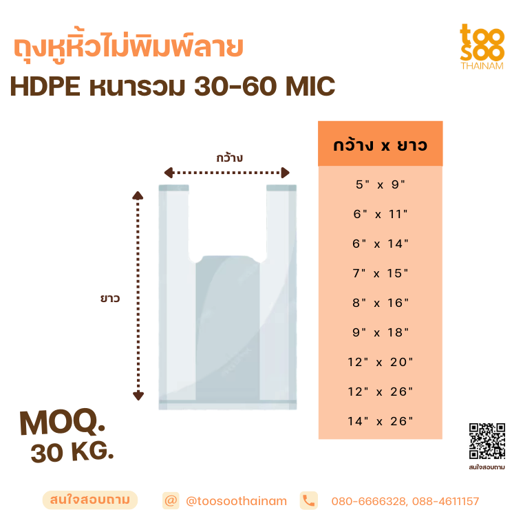 ประเภท HDPE ถุงขุ่นไม่ใส (ถุงร้อน-เย็น)